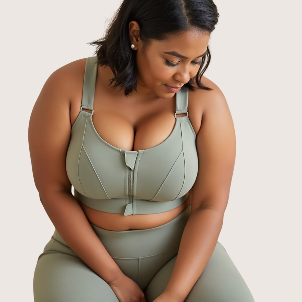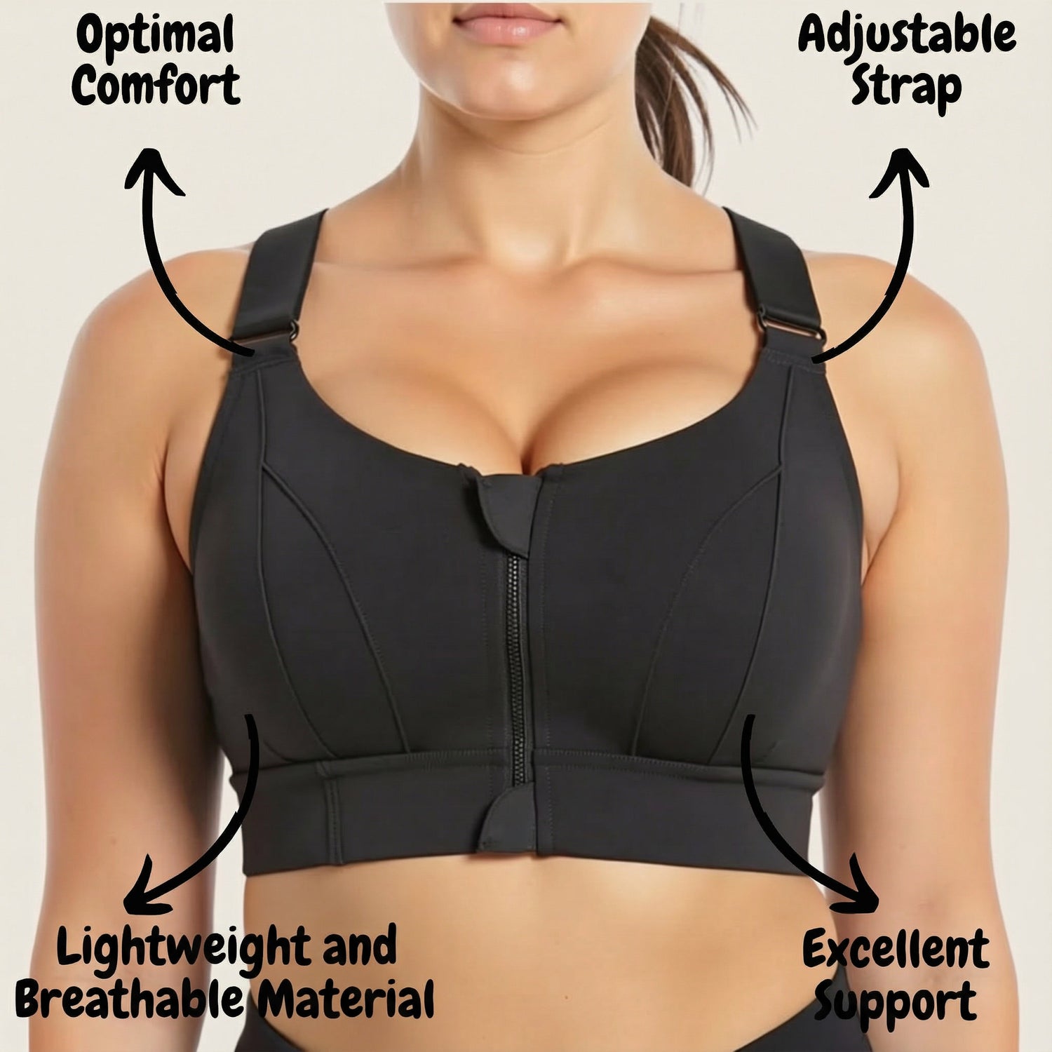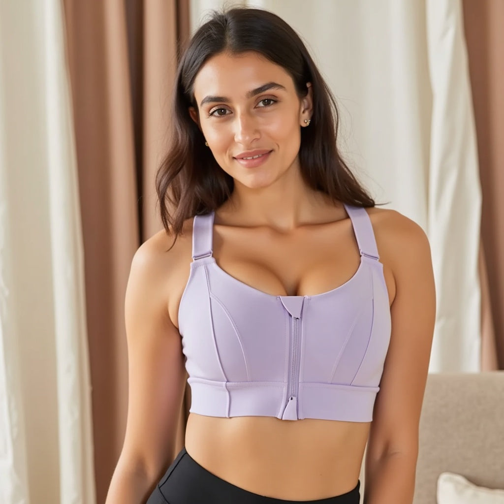La fermeture à glissière avant permet un port et un retrait faciles, avec un design élégant et fonctionnel qui ajoute à l'apparence élégante du soutien-gorge